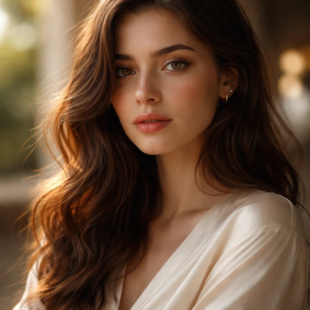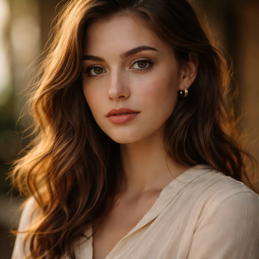 Portrait of a young woman, soft natural lighting, shallow depth of field, professional photography, cinematic