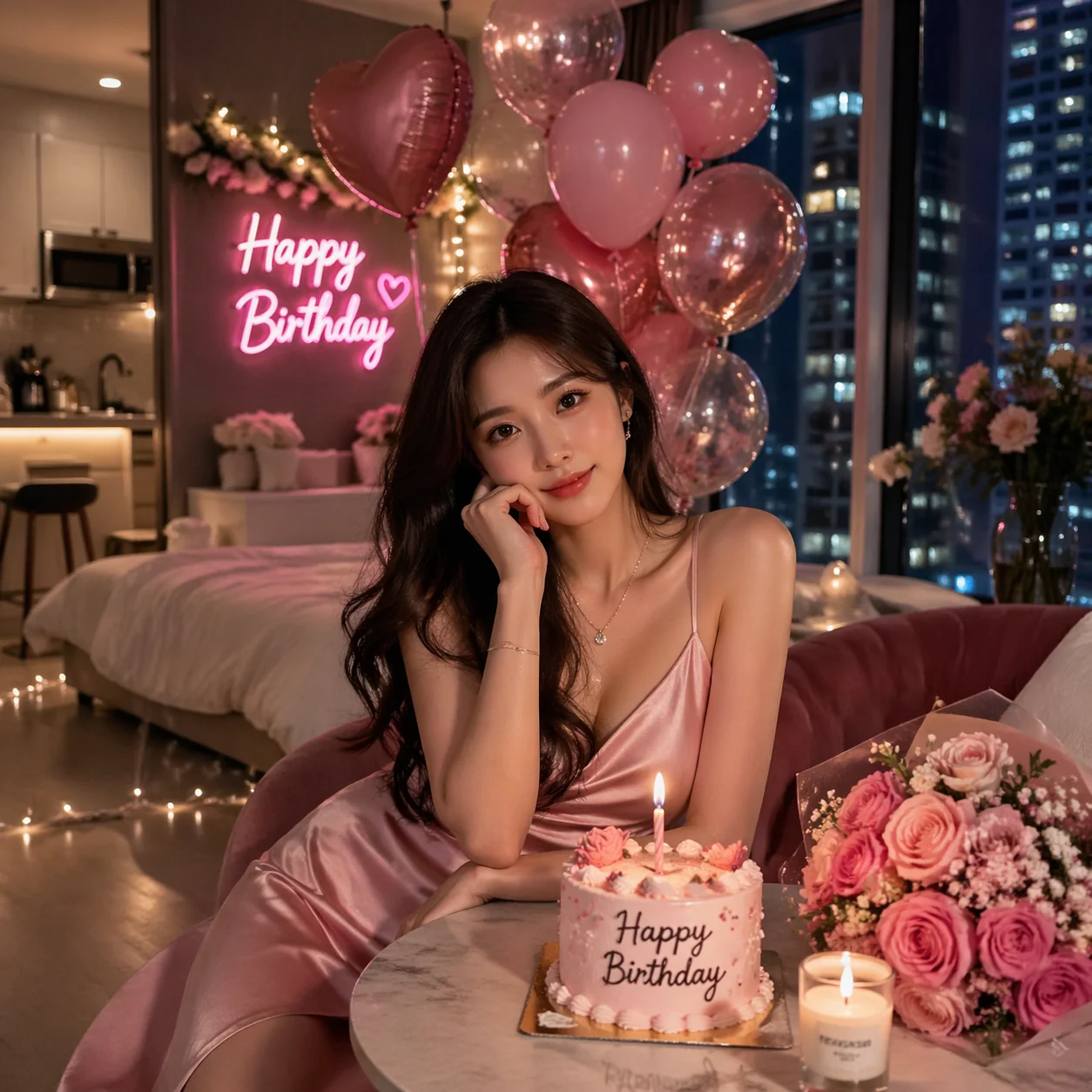 Create a beautiful birthday studio apartments picture of her...