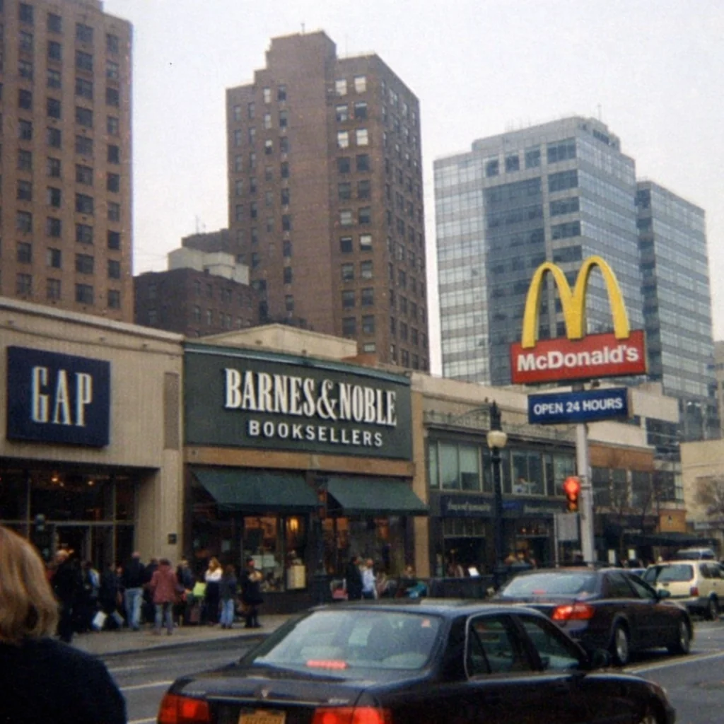 Gardenview City, New Jersey, Taken by an early 2000s low quality camera. Circa 2000, Tall buildings & shops such as Gap, Barnes & Noble, & McDonald’s.