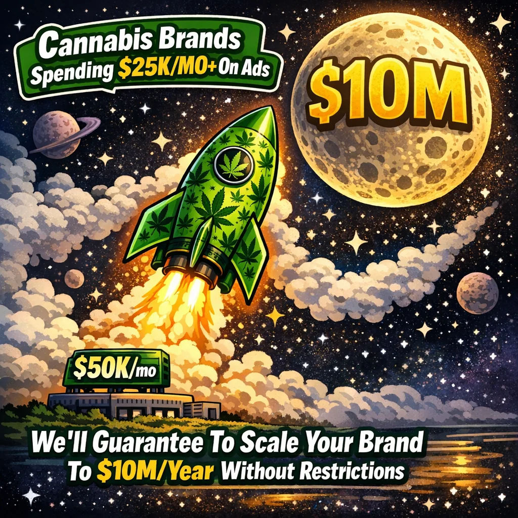 Visual: Cartoon rocket covered in weed leaves blasting off f...