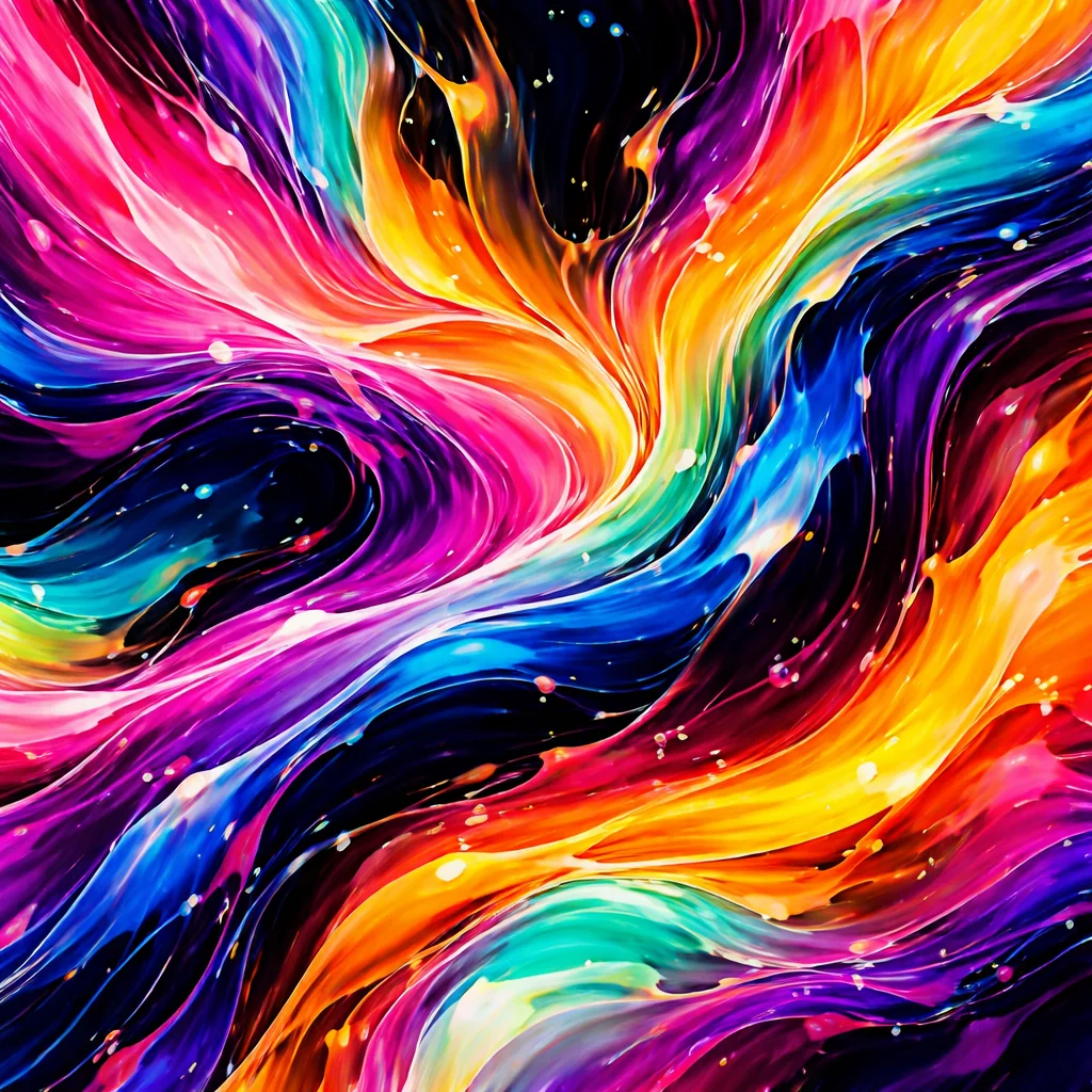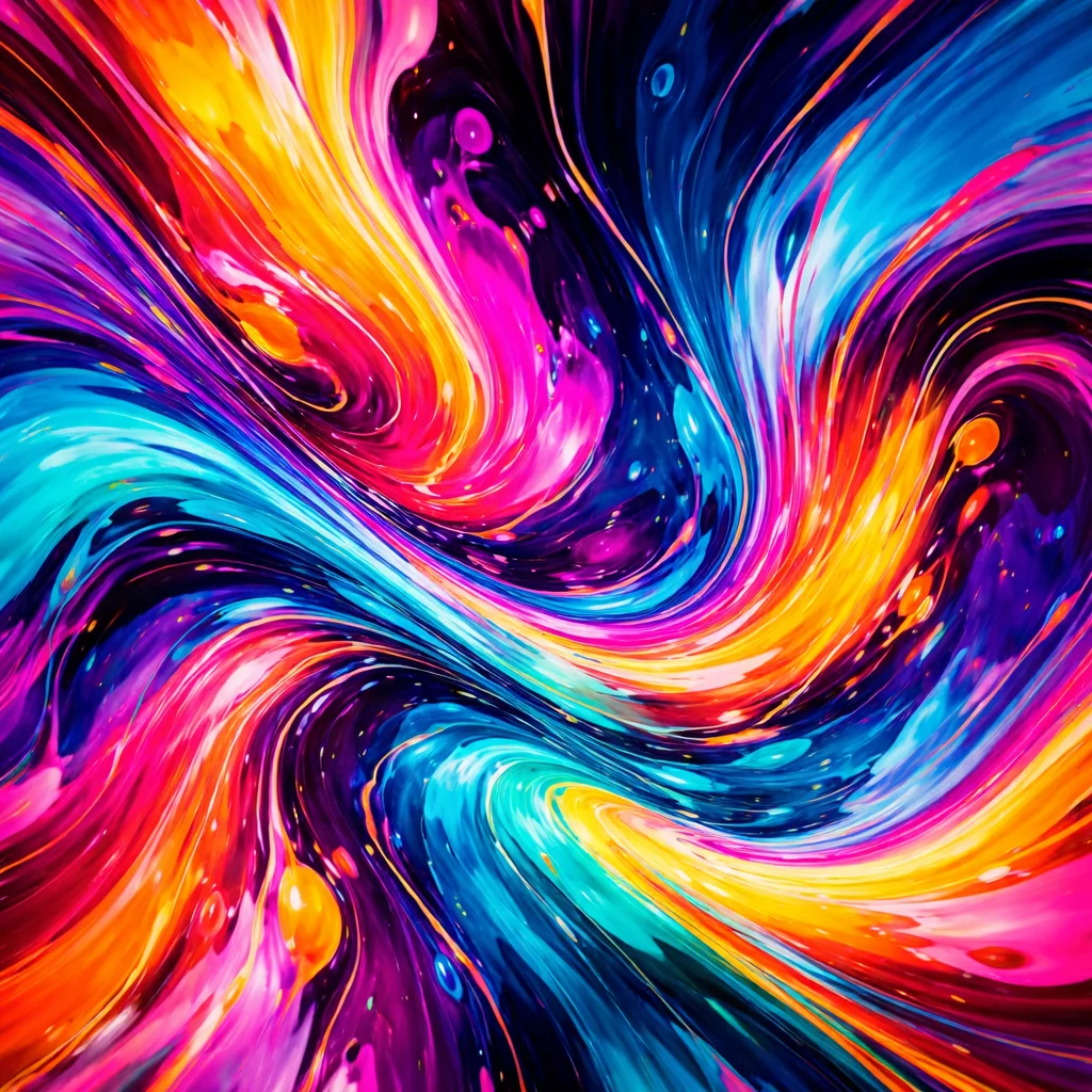 Flowing colorful liquids, abstract art, vibrant colors, high contrast, modern art style