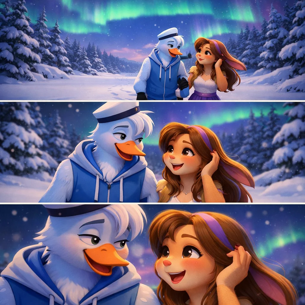 Setup: A breathtaking snow-covered landscape at night, soft ...