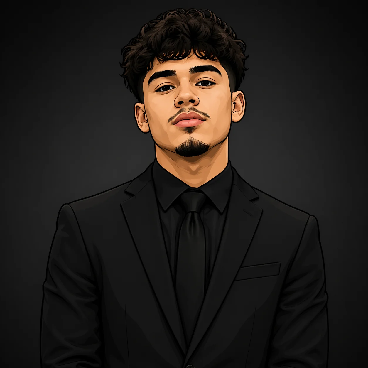 put this guys face one a professional business suit make it all black and in a cartoon type of filter