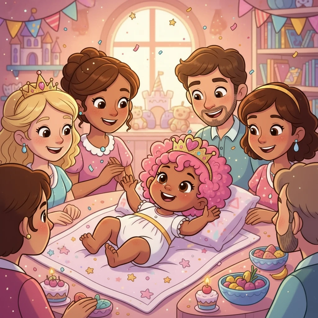 Title: Blush’s Royal Birthday Party Length: 5 pages (4-page story + 1 bonus rules page) Tone: Funny, cute, magical, and adorable for both boys and girls Illustration Style: Whimsical watercolor fairytale — soft pinks, golds, blues, and magical accents like crowns, castles, stars, balloons, and confetti. Include both princess and prince imagery so it feels inclusive. Story Text (use exactly as written on each page): 📖 Page 1 — “The Royal Beginning” Once upon a giggle and a sprinkle of glitter, a tiny princess named Blush was born in a cozy, happy kingdom filled with love and snacks. From her very first royal coo, everyone knew she was destined for greatness, sparkles, and maybe a little mischief. The kingdom cheered, “Long live Princess Blush!” as she wiggled, smiled, and claimed her very first crown (made of soft baby glitter and apple juice sprinkles). 📖 Page 2 — “The Growing Princess” As Princess Blush grew, so did her giggles! She twirled through the palace halls, danced with her stuffed-animal friends, made royal jokes, and practiced her princess wave—sometimes backwards, but always adorable. Soon, she became the sweetest princess in all the land, known for her kind heart, big imagination, and her royal love of birthday cake. 📖 Page 3 — “A Royal Announcement” One sunny royal morning, Princess Blush had BIG news. With a trumpet, a tiara, and a twirl, she announced, “Hear ye! Hear ye! I’m having a birthday!” The kingdom gasped with excitement. It was finally time for a grand royal celebration with dancing, friends, games, giggles, and cake-tasting fit for princesses and princes alike! 📖 Page 4 — “You’re Invited!” You are cordially invited to Princess Blush’s Royal Birthday Party! 📅 Saturday, December 7th ⏰ 2:00 PM – 5:00 PM 📍 Birchwood Community Center 1331 Fenwood Avenue • Oxon Hill, Maryland 📞 RSVP by Royal Decree: 240-381-1813 Please wear your royal best — crowns, capes, sparkles, or knight gear are all welcome! Get ready for a magical afternoon of fun, laughter, dancing, giggles, and of course… cake! Long live Princess Blush! 📖 Page 5 — “Royal Rules & Decrees” Welcome, Royal Guests! Before the celebration begins, please read the official rules of the kingdom: Rule #1: Eat cake. Then eat more cake. Rule #2: Twirl, jump, dance, and laugh — it’s a royal command! Rule #3: Crowns, sneakers, capes, and cool moves are all welcome. Rule #4: Gifts fit for royalty = gift cards only, please! Rule #5: Join The Royal Book Swap & Donate! Bring a book and take a book! All extra books will be donated as part of Blush’s 4th Annual Royal Book Donation, helping other little kings and queens discover new stories. Rule #6: Be kind, be silly, and make new royal friends! Rule #7: If you forget a rule, just smile — that’s always allowed. End of Story This story should feel like a short, magical tale suitable for a birthday party invitation, with playful energy, vibrant colors, and inclusive imagery for both boys and girls.