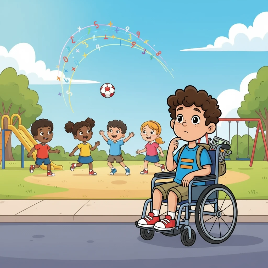 Érase una vez un niño llamado Leo, que se movía en una silla de ruedas, pero su mente era un cohete listo para despegar. Mientras sus amigos corrían por el patio, Leo veía el mundo a través de la lógica de los números. Para él, una pelota lanzada no era solo un juego; era una parábola, una función cuadrática perfecta que subía y bajaba. Leo se sentía un poco solo en su mundo de fórmulas, hasta que conoció a la maestra Elara. Elara no enseñaba en un pizarrón; ella enseñaba en el parque, en las calles, ¡en la vida misma! "Leo", le dijo un día, "la vida es una función. Cada decisión es una variable que afecta el resultado. ¿Quieres ver la magia?" Juntos, observaron cómo el sol se movía a través del cielo, describiendo una función sinusoidal que cambiaba con las estaciones. En la feria, Elara le mostró cómo la montaña rusa seguía una función cúbica de subidas y bajadas, y cómo el carrusel giraba en una función circular perfecta. Leo comprendió que las funciones no eran solo ecuaciones en un libro, eran la forma en que el universo bailaba. Gracias a la maestra Elara, Leo dejó de ver su silla de ruedas como una limitación y comenzó a verla como un punto de partida. Un punto de partida desde el cual podía observar y comprender los patrones ocultos del mundo. Con cada nueva función que descubría, su sonrisa se hacía más grande. Y así, el niño que una vez se sintió solo en su mundo de números, se dio cuenta de que tenía un superpoder: podía ver la belleza de las matemáticas en cada rincón del universo. La vida de Leo era un gráfico ascendente de felicidad, una función ininterrumpida que nunca dejaba de crecer.